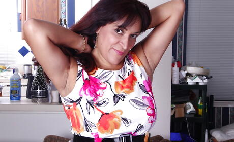 Karups Older Women: 足フェチ・ショーで派手なスカートを履いた魅惑的な美乳女ベロニカ