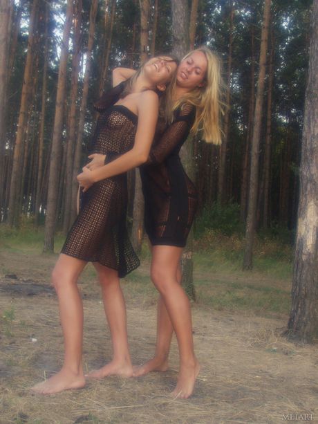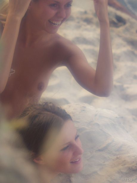 Met Art: セクシーなブロンド美女たちが太陽の下でヌードポーズをとり、ホットなボディを披露している。
