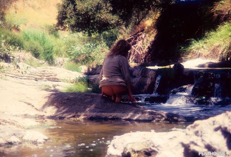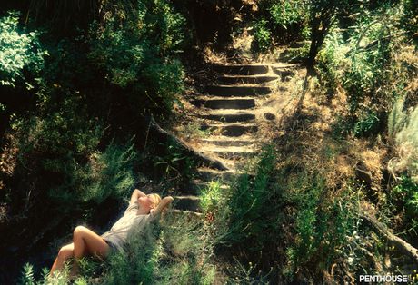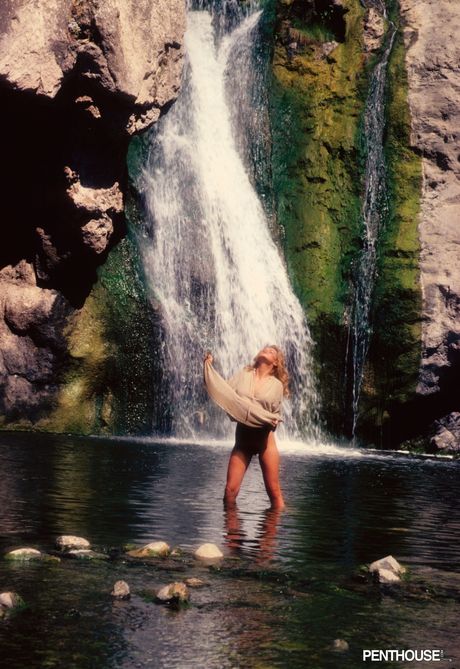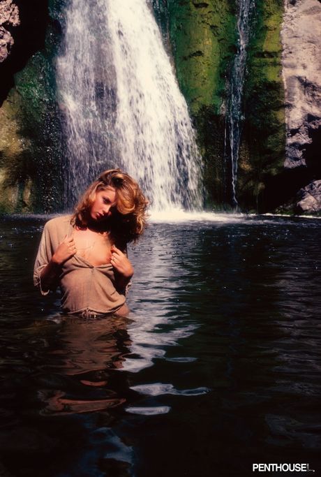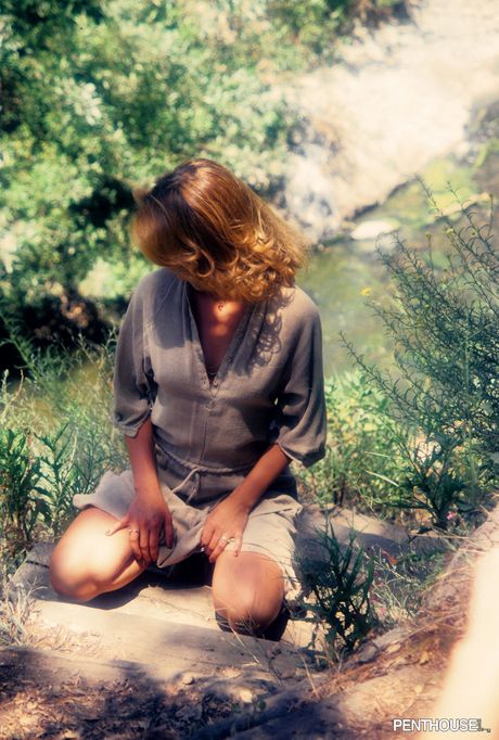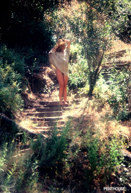Penthouse Gold: セクシーなブロンド、キャロル・アン・ウィルケンが小さなおっぱいと熱いお尻を野外で披露する。