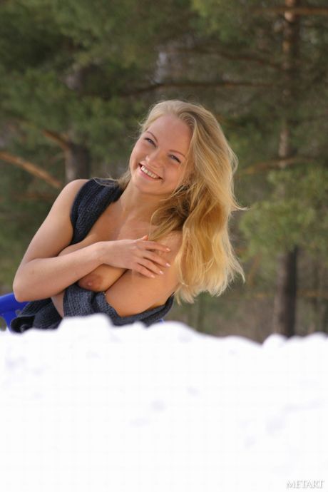 Met Art: セクシーなブロンドのティーン、ハンナCが雪の中でハイヒールを履いて全裸ポーズ