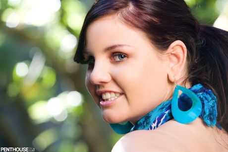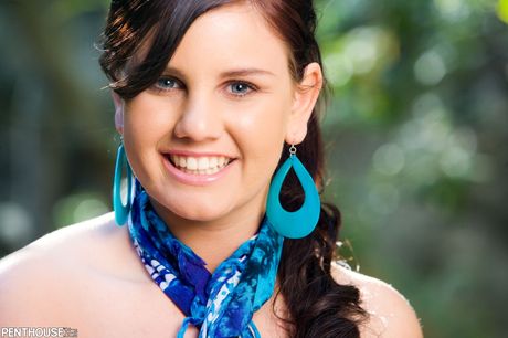 Penthouse Gold: セクシーなブルネット、ミッシェル・ブラウンがドレスを剥ぎ取り、その曲線美を披露する。