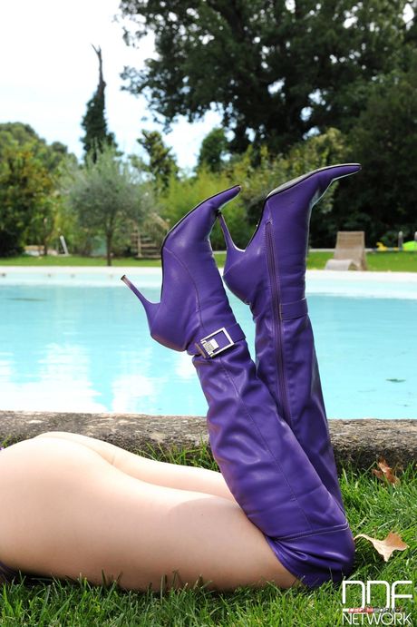 Porn World: セクシーなブルネット、サンディ・Kがソロの野外で巨乳と足の指を露わにする。