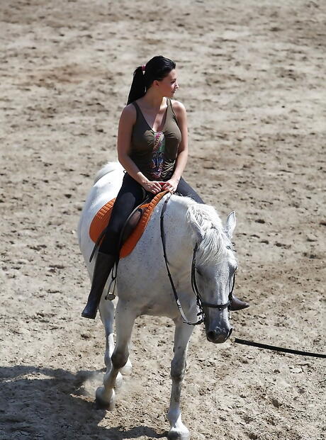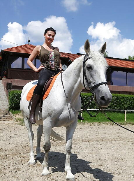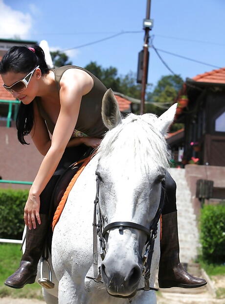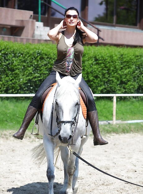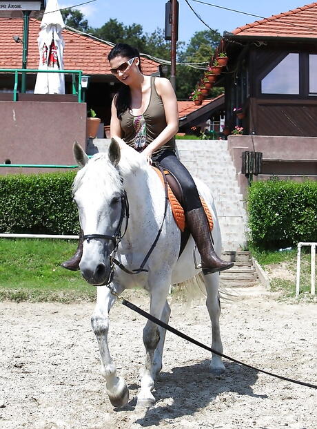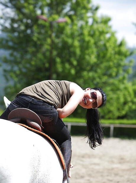 Aletta Ocean Empire: セクシーなメガネをかけたハンガリーのポルノ女優アレッタ・オーシャンが野外でポーズをとる
