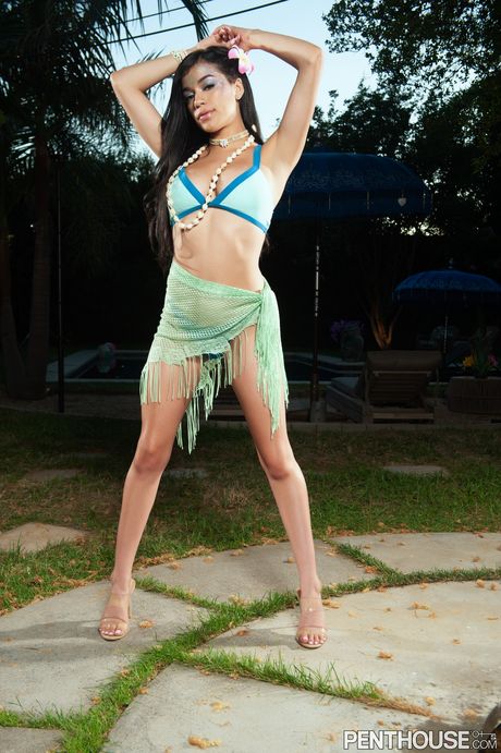Penthouse Gold: セクシーなラテン系のサバンナ・シックス、天然巨乳を露出して野外でポーズ