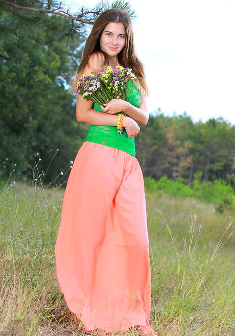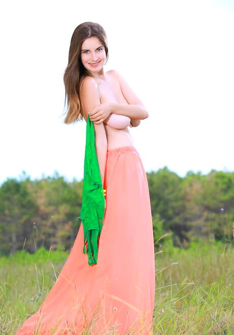 Met Art: ウクライナ人女性、マルタ・Eがセクシーなスカート姿で大きなフトアゴとハゲマンコを露出している。