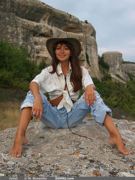 Domai: スキニー・ティーン、ジュリエットがソロで小さなおっぱいを丸出しにする。
