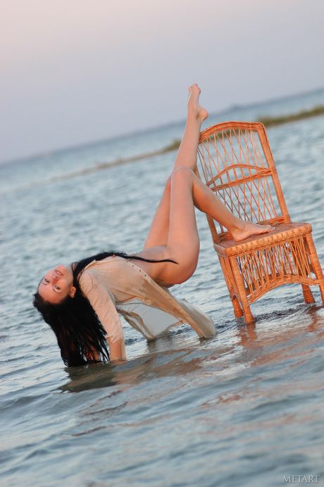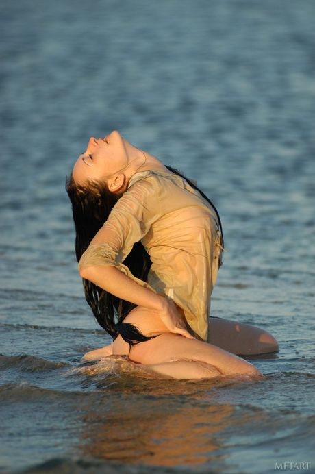 Met Art: スレンダーなティーン、ウリヤ・Gがビーチで小さなおっぱいを見せ、裸でポーズをとる。