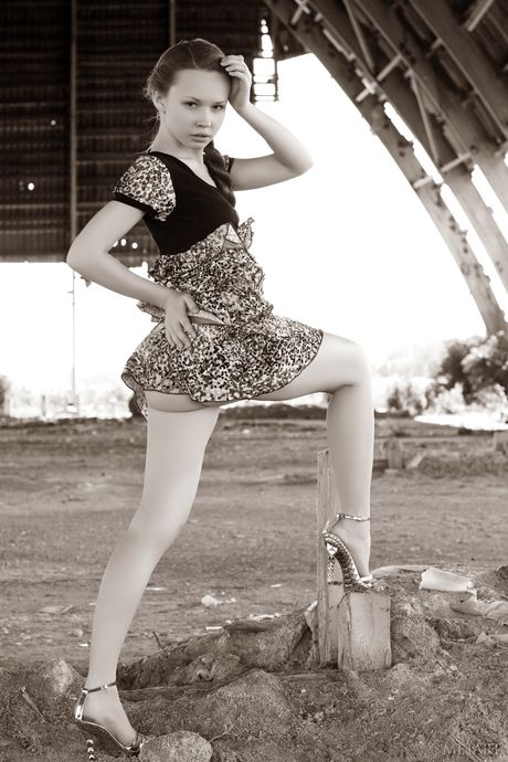 Met Art: スレンダー・ティーン、バージニア・サンが野外で裸になり、小さなおっぱいとお尻を見せる。