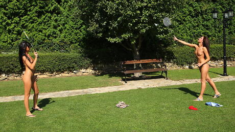 ALS Scan: スリムな美女ローリン・メイとタナー・メイズがアソコを舐めながら外でセックストイで遊ぶ。