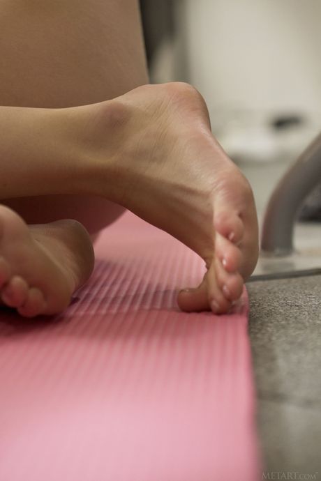 Met Art: スポーティなブロンドのライリー・アンがジムでヨガパンツを脱いでヌードポーズ