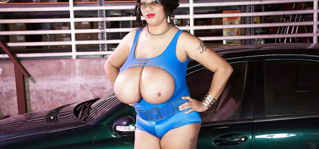 Score Land: 見事なアメリカ人ミルフ、ロキシー・レッドが巨乳を披露し、外で自慰にふける。