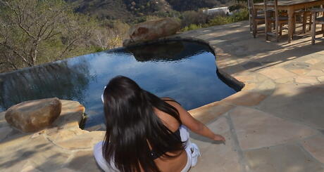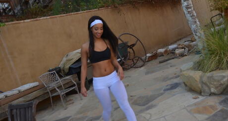 Black GFs: 見事なラテン系ブルネットのアマチュア、ティアナ・トランプが小さなおっぱいを見せ、野外で脚を広げる。