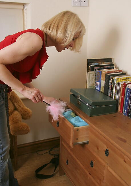Karups Older Women: ピチピチのジーンズを穿いたブリティッシュ・ブロンド美熟女ヘイゼル・メイが巨乳を露出してセックストイと戯れる