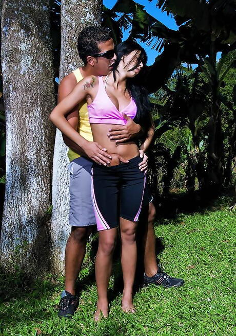 Mike in Brazil: セクシーなショートパンツ姿の極上ラテン、ヴィクトリア・ヴェントゥリーニが、外で熱いフェラチオの後、アソコを激しく責められる