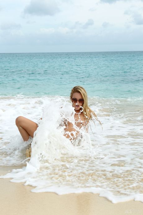 ALS Scan: すらりとしたティーン、サラ・ジェイムズが剃毛したマンコを大きなディルドでもてあそぶ。