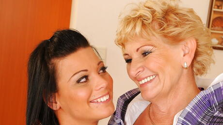 Old Young Lesbian Love: ストッキング姿のすらりとした女性サリー・Gとメレーヌが、ホットなレズビアン・セックスでジューシーなアソコを舐めまくる。