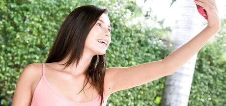 Naughty Mag: シルフのようなアメリカ人ティーン、カロリナ・スウィーツがセクシーなショートパンツ姿でお尻を見せながら野外で自慰行為。