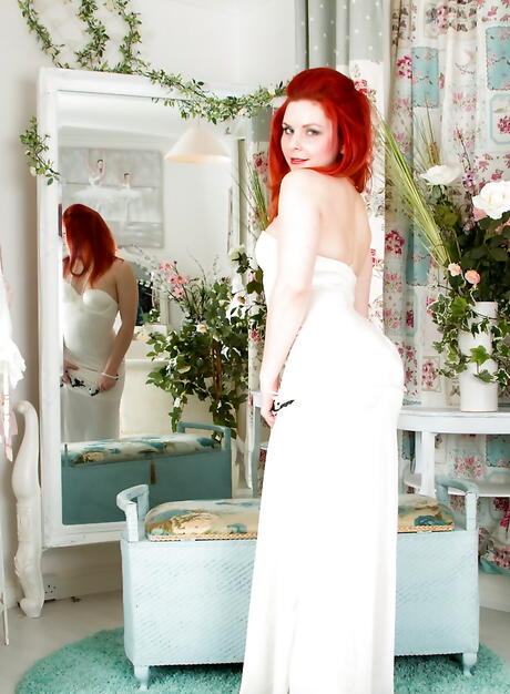 Anilos: 誘惑する赤毛のミルフ、ポリーヌが巨乳を脱いで脚を広げる