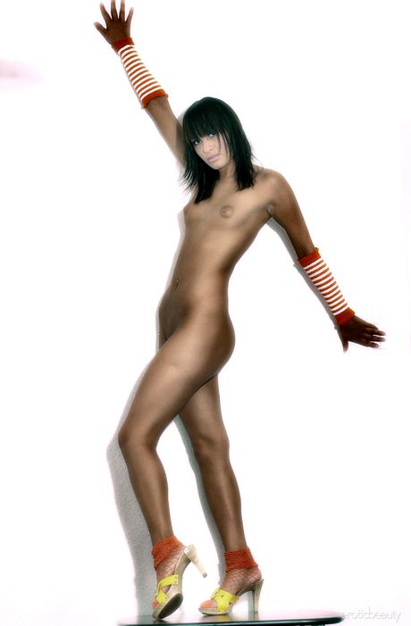 Erotic Beauty: 細いティーン、アグネスがパンストを脱いでハイヒールでヌードポーズ
