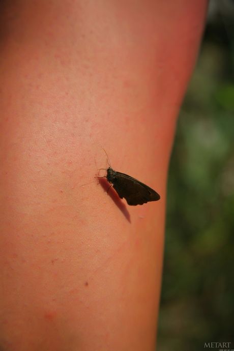 Met Art: 細いティーン、ベリンAが森の中ですべてをさらけ出し、小さなおっぱいと足を見せる。