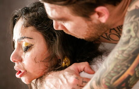 Evil Angel: とても魅力的な黒髪のローズ・ダーリンがセクシーなショートパンツ姿で巨根をしゃぶった後にハードファック