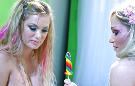 Low Art Films: セクシーなストッキングを履いたとても魅力的なミルフレズレズビアンのタイラー・フェイスとシャイラ・スタイルズがジューシーなアソコを舐めながらディルドでファックする。
