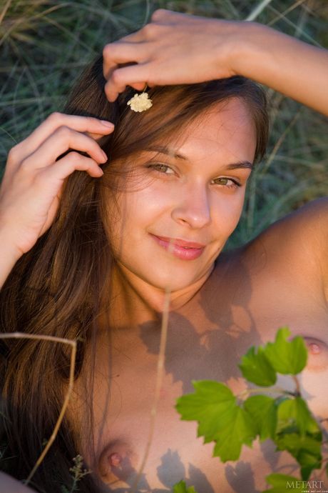 Met Art: 매혹적인 십대 프레야 A는 작은 가슴을 보여주고 정원에서 알몸으로 포즈를 취합니다.