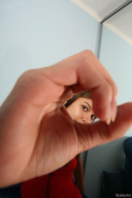 Rylsky Art: 부엌에서 나체로 포즈를 취하는 작은 가슴과 대머리 음부를 가진 매혹적인 십대 프레야
