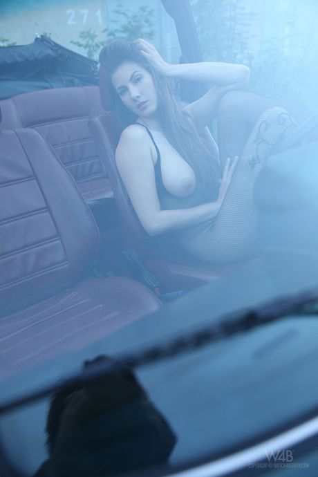 Watch 4 Beauty: 매력적인 십대 코니 카터가 야외에서 큰 가슴을 드러내고 어망에서 포즈를 취하고 있습니다.