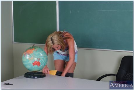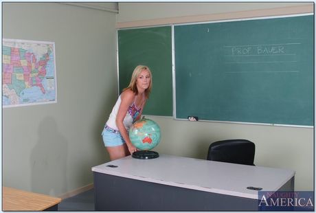 Naughty America: 금발 여대생 에이미 무어가 교실에서 옷을 벗고 자위하는 모습