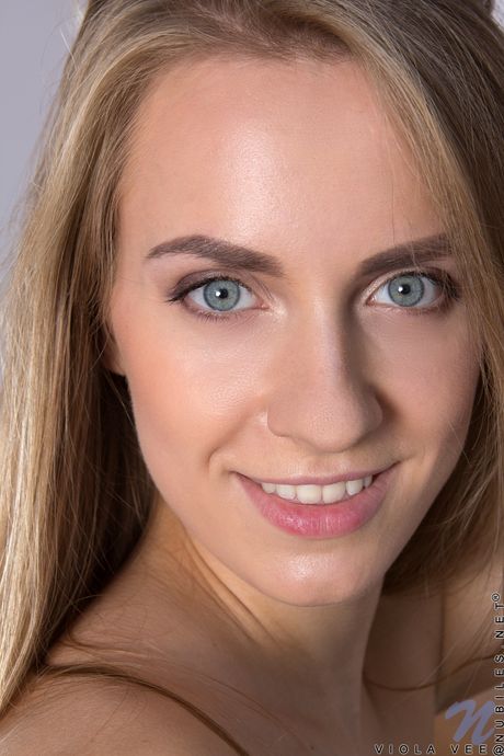 Nubiles: 금발 소녀 비올라 비가 브래지어와 팬티 세트를 벗고 하이힐을 신고 누드 포즈를 취하고 있습니다.