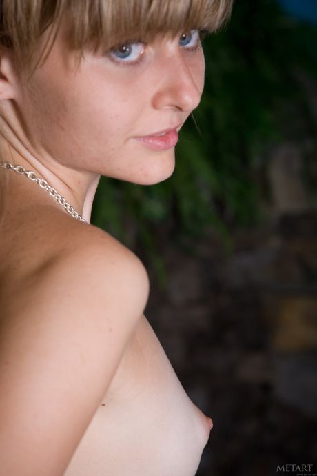 Met Art: 금발 십대 아가타 A가 끈 팬티를 벗고 완전히 벗은 모습