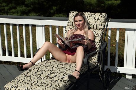 ALS Scan: 금발의 십대 아리아 아모레가 파티오에서 알몸으로 음부를 주먹으로 때리고 있다.