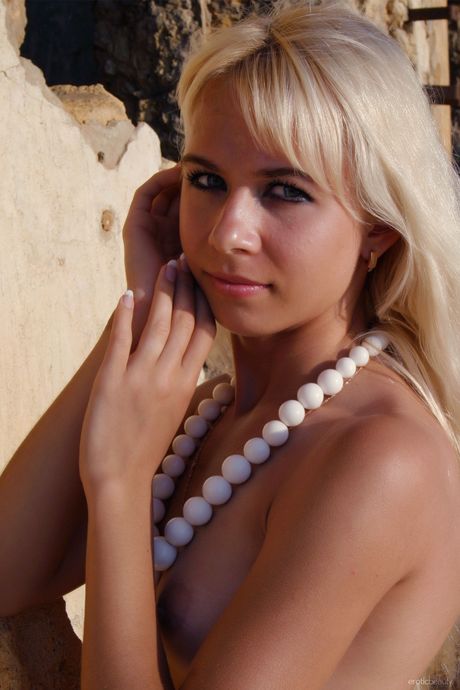 Erotic Beauty: 낡은 건물 근처에서 나체로 하이힐을 신고 있는 금발의 10대 마리나 G 모델