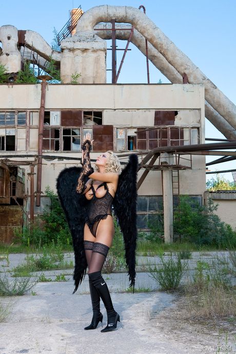 Met Art: 금발 십대 타티아나 B가 검은색 스타킹을 신고 알몸이 된 모습