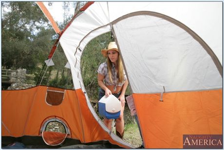 Naughty America: 갈색 머리 아가씨 하모니가 벗고 야외에서 큰 가슴과 엉덩이를 보여줍니다.