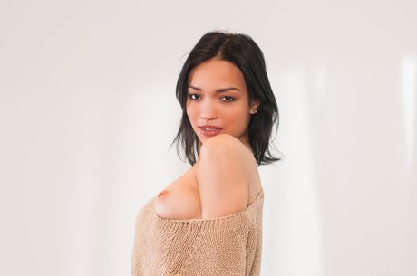 Met Art: 비키니를 벗고 누드 포즈를 취하는 갈색 머리 십대 반사리 A