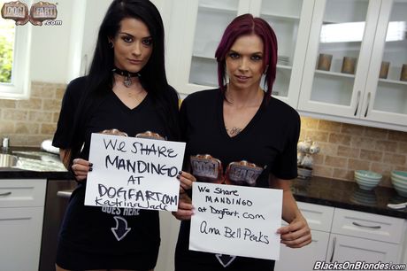 Dogfart Network: 가슴이 큰 갈색 머리 안나 벨 피크스와 카트리나 제이드가 주방 쓰리섬에서 BBC를 공유합니다.