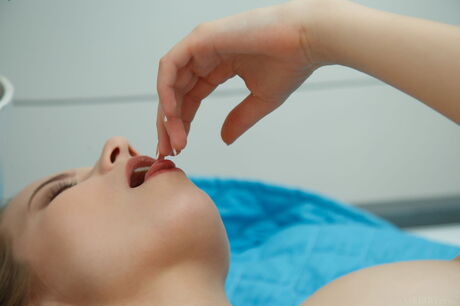 Met Art: 귀여운 십대 델리지가 팬티를 벗고 계단에서 완전히 알몸이 된 모습