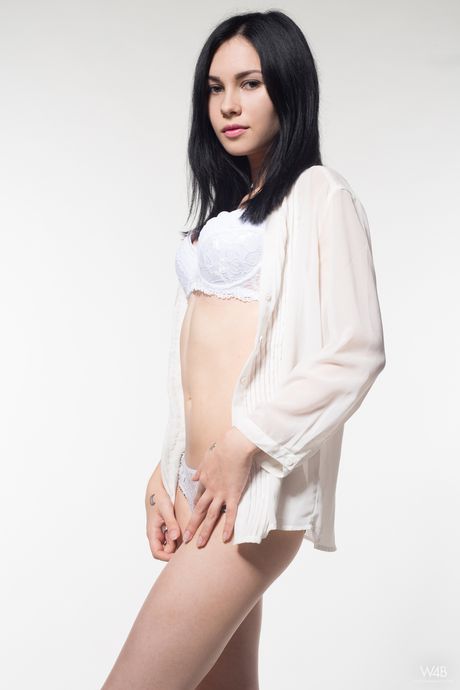 Watch 4 Beauty: 검은 머리의 10대 소녀 알라가 브래지어와 팬티 세트를 벗고 나체로 모델링하기