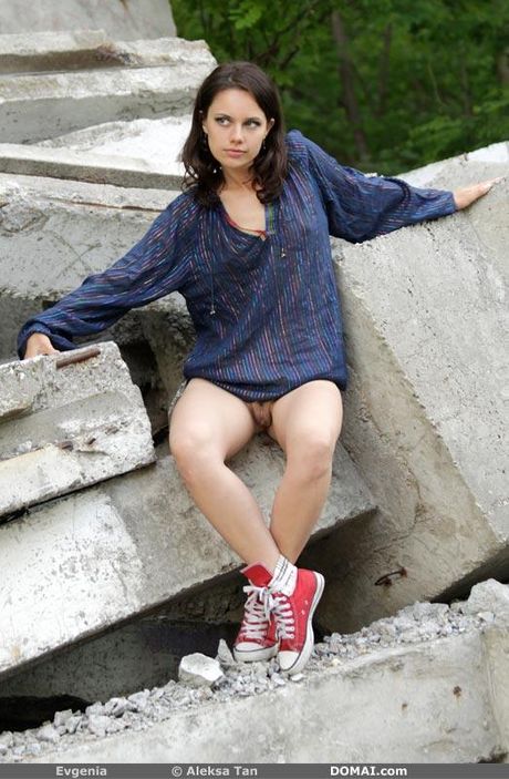 Domai: 유쾌한 십대 에브게냐가 솔로 촬영 중 바위 노두에서 알몸으로 촬영합니다.