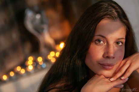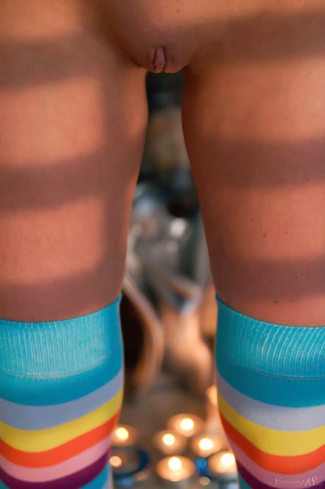 Stunning 18: 사랑스러운 10대 아누슈카 E가 스타킹을 벗고 완전히 벗은 모습