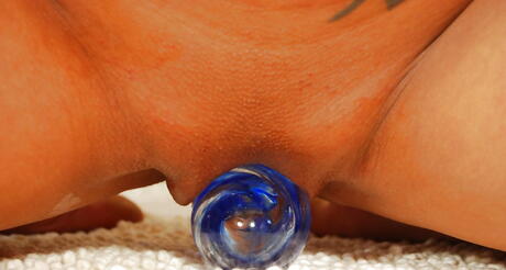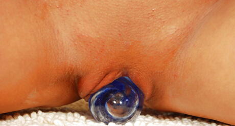 Wet And Puffy: 섹시한 청바지를 입은 매력적인 귀염둥이 저스틴이 큰 가슴을 보여주고 그녀의 성기에 장난감을 넣습니다.