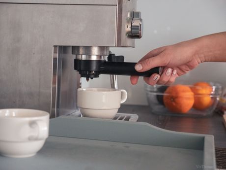 Viv Thomas: 흥분한 레즈비언 아도라 레이와 진저 메리는 섹스하기 전에 커피를 마신다.