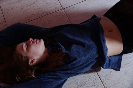 The Life Erotic: 섹시한 십대 클라라 D가 자위하기 전에 망사 팬티 스타킹을 벗습니다.