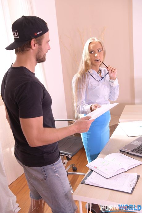 Porn World: 키누스키는 입으로 키스하고 상사에게 섹스합니다.