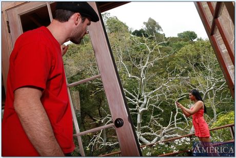 Naughty America: 라틴계 베이비 에미 레예스가 옷을 벗고 큰 가슴과 엉덩이를 보여줍니다.
