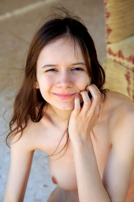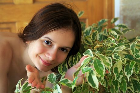 Met Art: 마른 십대 에이비 샤인이 정원에서 알몸으로 옷을 벗고 포즈를 취하고 있습니다.