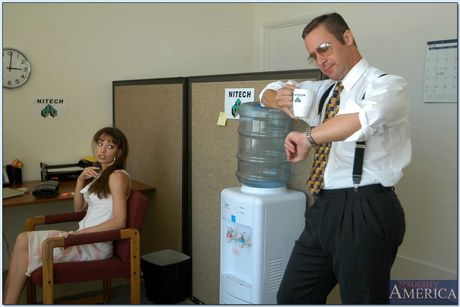 Naughty America: 섹스 후 얼굴이 정액으로 뒤덮인 몸집이 작은 비서 바네사 레인