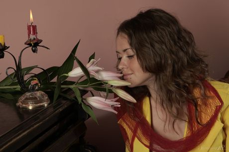 Stunning 18: 순수한 십대 베가는 발코니에서 누드로 아름다운 몸매를 과시합니다.